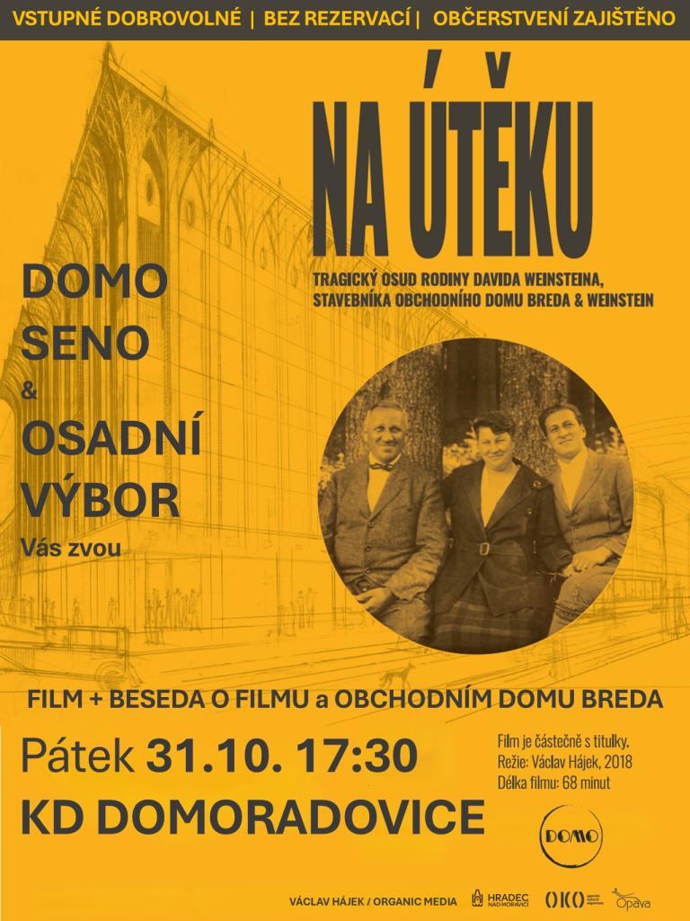 Klub seniorů Domoradovice Domo Seno a Osadní výbor zvou na promítání filmu a besedu o osudu rodiny Davida Weinsteina, stavebníka domu Breda & Weinstein.